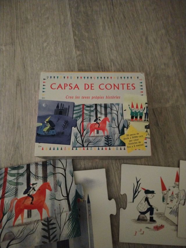 Detalles del productoJuego de puzzle Capsa de contes para crear historias. Incluye 20 piezas para combinar y crear tus propias historias. Las piezas están en buen estado. Ideal para niños. - 20 piezas de puzzle.