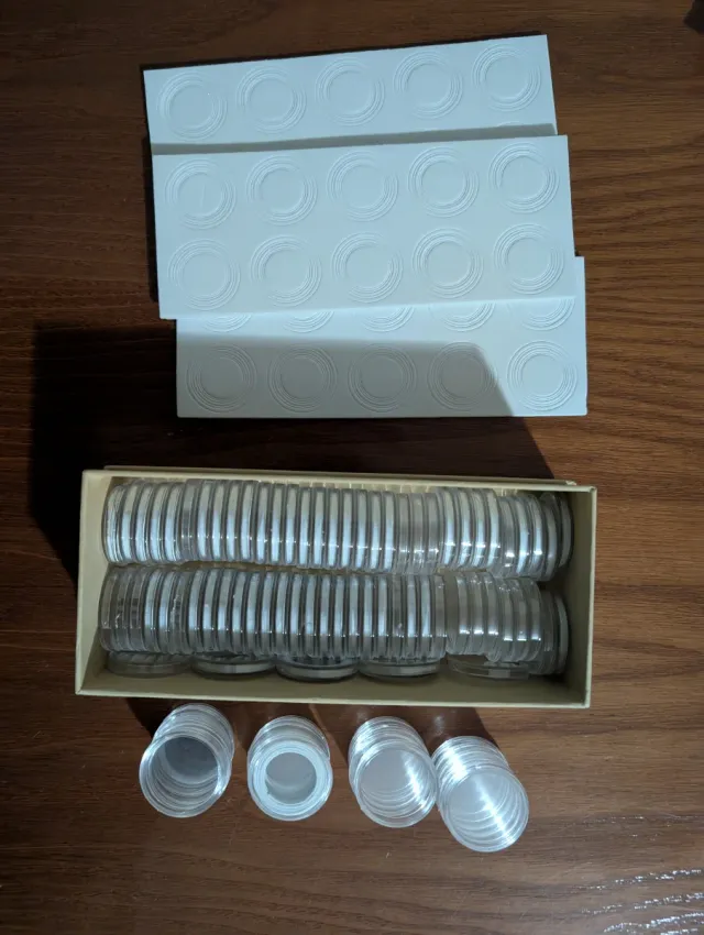 Detalles del productoOrganizador de cápsulas para monedas de 33 mm. Incluye almohadilla Eva. Se vende por no utilizar están como nuevas