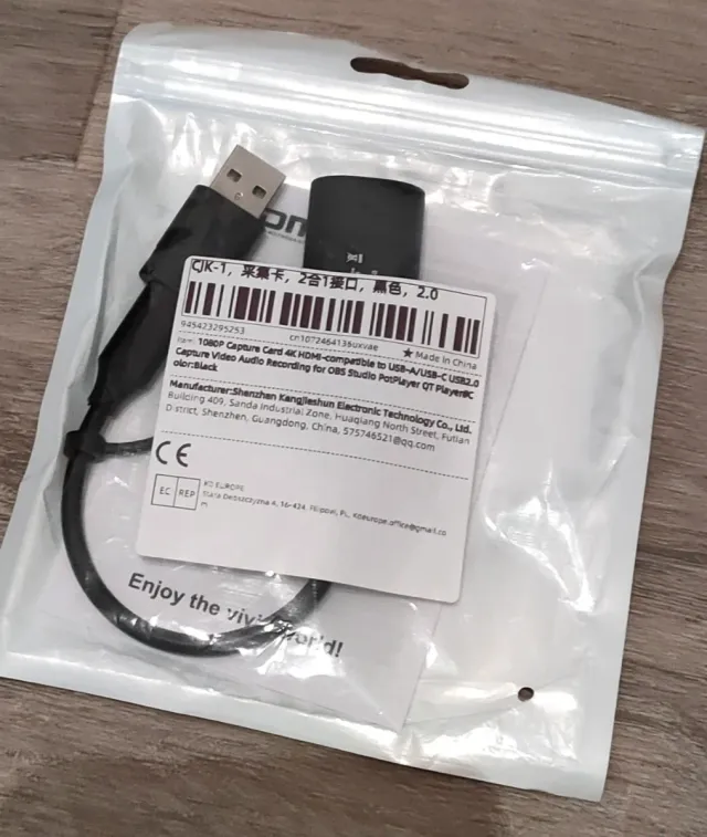 Capturadora de video y audio 4K HDMI compatible con USB-A y USB-C. - Modelo CJK-1. - Color negro. - Versión 2.0. - Fabricado en China.