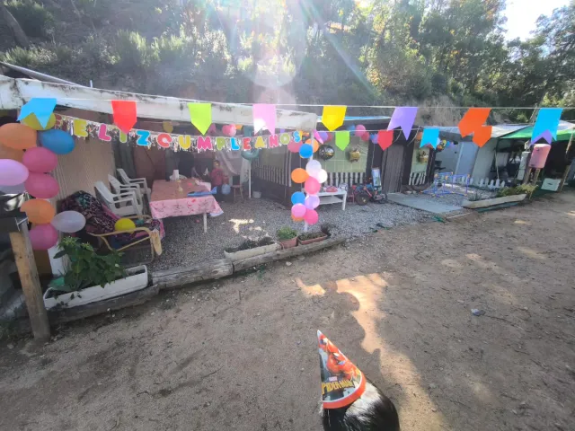 La caravana es fija,el camping es la sureda situado en Arburcies,cuota mensual económica.