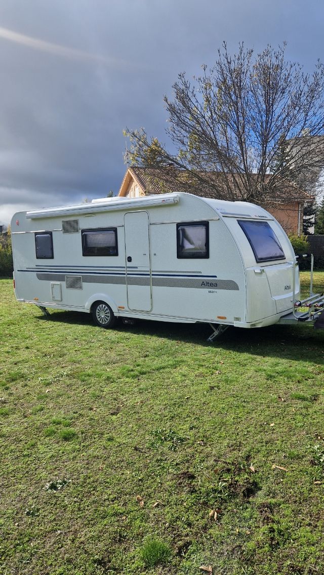 Detalles del productoEn perfectas condiciones. 3 ambientes. 6 personas. Cama doble, 2 literas y salon convertible. Gran capacidad de almacenaje. Canapé bajo cama doble con acceso por dentro y por fuera y Canapé bajo litera inferior. Maletero frontal. Calefacción Truma, agua caliente, ducha separada por mampara, cocina 3 fuegos(Nunca usada) Nevera grande trivalente. Extras: aire acondicionado belair 2000 con bomba de calor, moover, tv, portabicicletas, toldo, avance grande de invierno.Preguntad para más información. Gracias