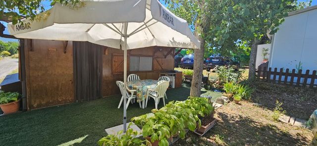 Caravana con avance de madera fija en camping Sabiñánigo, 5 plazas en caravana y 2 en sofa del avance.
