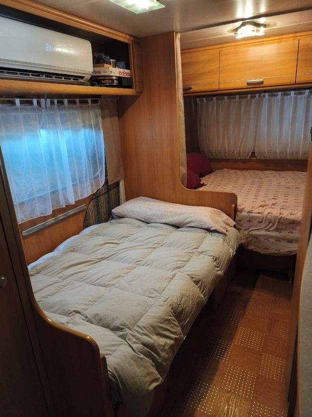-Avance con aislamiento térmico de poliestireno expandido en techo y cortinas térmicas, bajos aislados, varios tipos de suelos con césped artificial. Sofá 4 plazas.moviliario. frigorífico y nevera. Estufa catalítica con gas. Radiadores de aceite.Cenador con todo mesa, 6 sillas, BBC de gas. Nebulizador para verano.