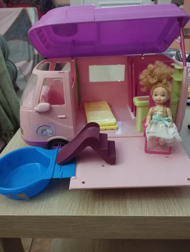 Divertida caravana de Hello Kitty, perfecta para horas de juego. - Incluye una muñeca. - Cuenta con piscina. - Dispone de tobogán.