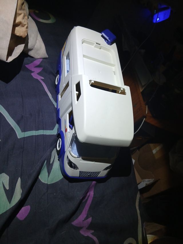 Caravana de Playmobil. Falta tapa arriba - Color blanco y azul. - Diseño detallado.