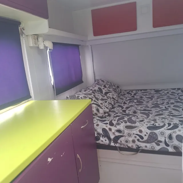 Dos camas, una de 140×190 y otra de 105×190, ambas con dos grandes arcones debajo para guardar todo lo que necesites. Al ser inferior a 750 kg. Esta considerada como remolque y no tiene que pasar itv ni pagar ningún impuesto. No tiene ducha ni cocina ni avance. URGE VENTA.