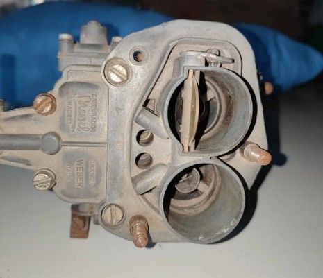 Carburador Weber para Seat 850, usado. Lleva años parado y guardado. - Marca: Weber - Para Seat 850 - Presenta señales de uso y algo de suciedad.