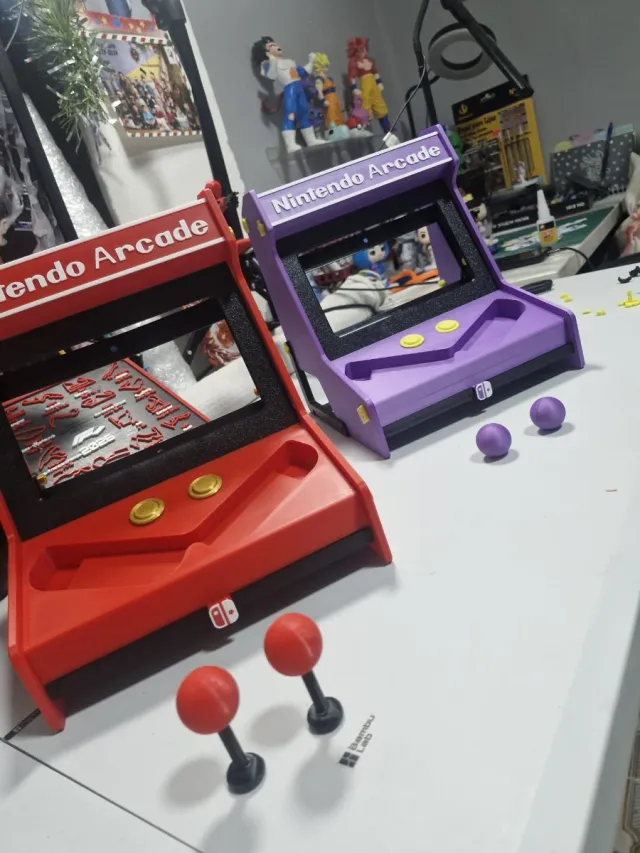 Carcasa estilo arcade para Nintendo Switch. - Diseño compacto y portátil. - Color rojo y morado disponibles. - Incluye joysticks y botones. - Compatible con Nintendo Switch.