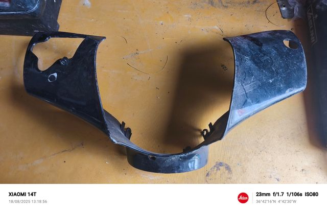 Carcasa frontal para Piaggio Zip. Está usada, pero en buenas condiciones. - Pieza de plástico de color negro. - Presenta algunos arañazos superficiales.