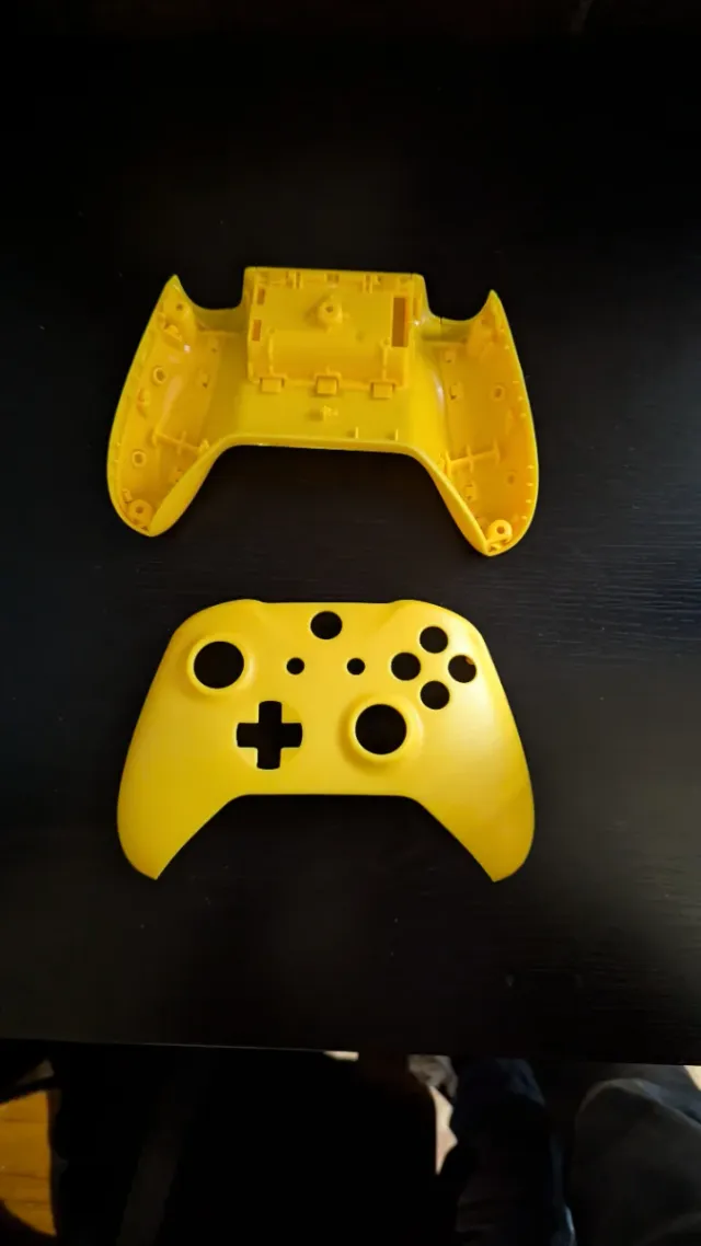 Carcasa de repuesto para mando de Xbox One S en color amarillo. - Parte frontal del mando. - Parte trasera del mando.