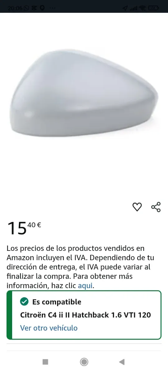 Carcasa de espejo retrovisor exterior. - Compatible con Citroën C4 II Hatchback 1.6 VTI 120.