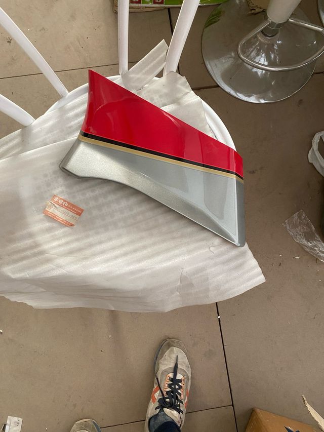 Detalles del productoCarcasa delantera izquierda para Suzuki GSX 500 de los años 1985 a 1987. Presenta un diseño bicolor en rojo y plateado con una línea dorada.