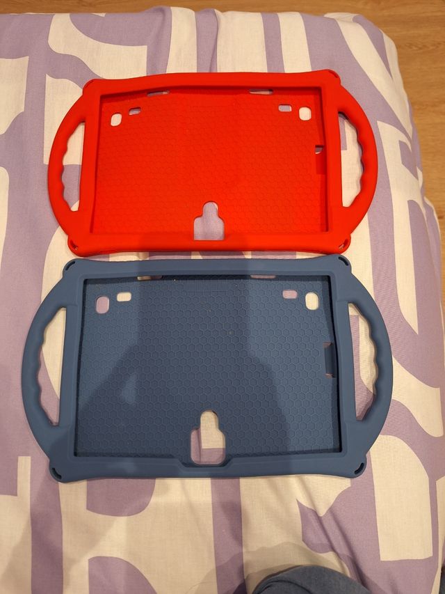 De goma platico blando con asas rojo y azul. 4€ cada uno
