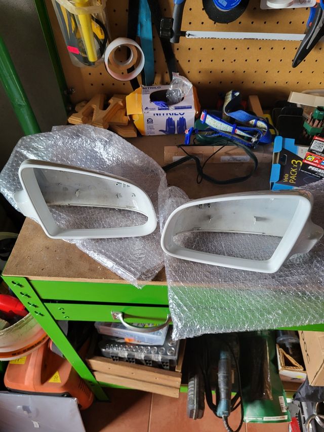 Detalles del productoCarcasas de repuesto para los espejos laterales de un Audi A4 (B7). Son de color blanco.