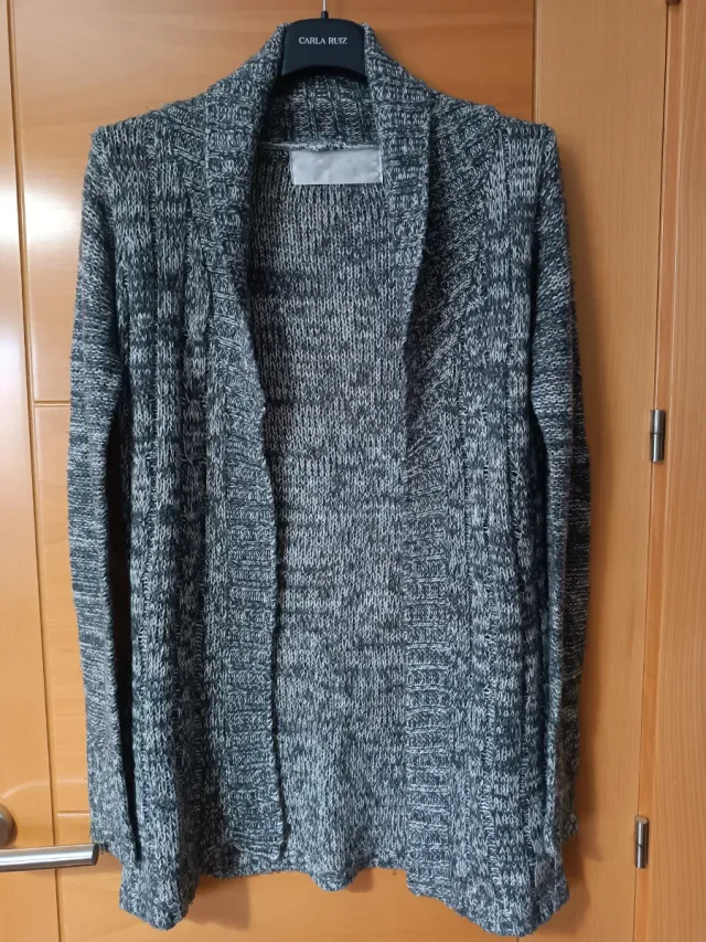 Cárdigan largo gris y blanco
