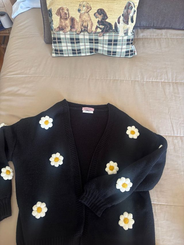 Cárdigan Negro GLOWRIAS con Flores Blancas