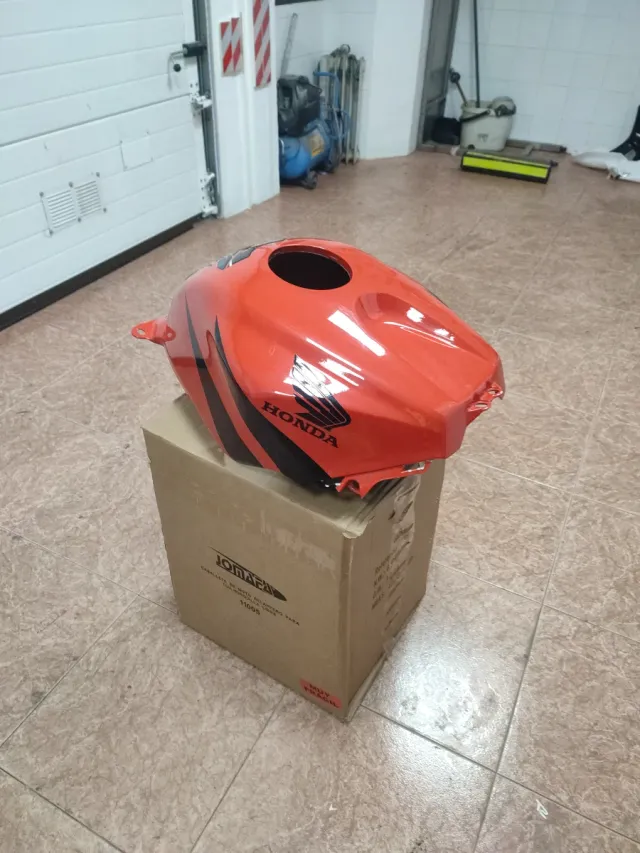 Detalles del productoCarenado de depósito en color naranja con detalles negros para Honda CBR 600rr.