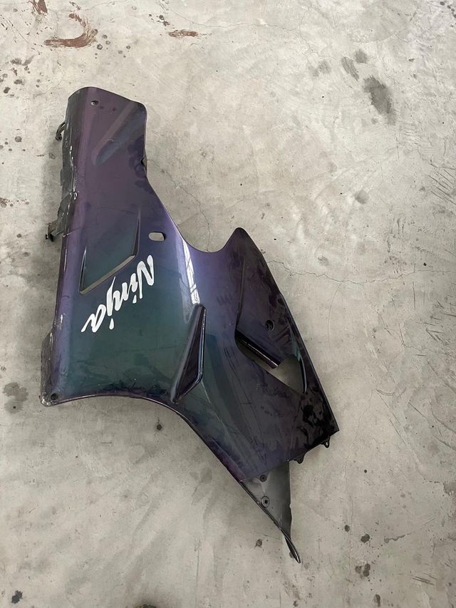 Carenado lateral derecho para Kawasaki ZX12R del año 2000. Presenta un con una raspada debajo, pero por lo demas esta bien.
