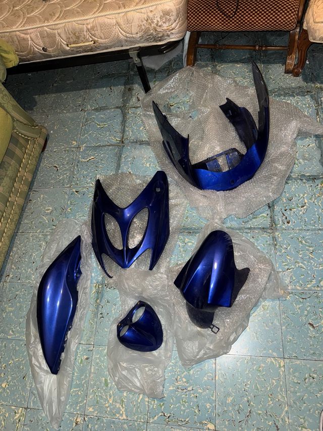 Detalles del productoVendo carenado de Yamaha Aerox en color azul marino. Está en buen estado general y tiene casi todas las piezas, aunque no está completo del todo. Una de las chapas está algo rascada, pero nada grave (se ve en las fotos). Ideal para repuestos o para un proyecto.