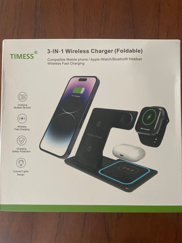 Plataforma para cargar de forma rápida airpods, reloj y iPhone a la vez.