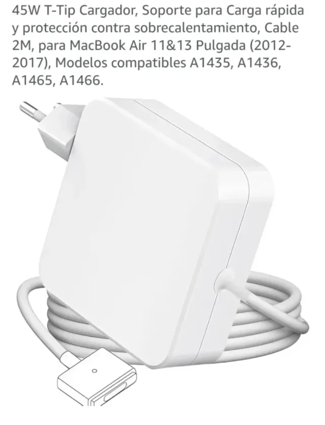 Detalles del productoCargador T-Tip de 45W para MacBook Air.