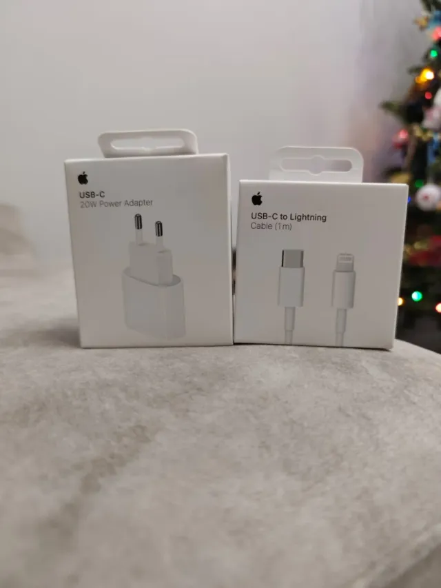 Se vende cargador Apple de 20W con conexión USB-C y cable USB-C a Lightning de 1 metro. - Adaptador de corriente de 20W. - Cable de 1 metro de longitud.