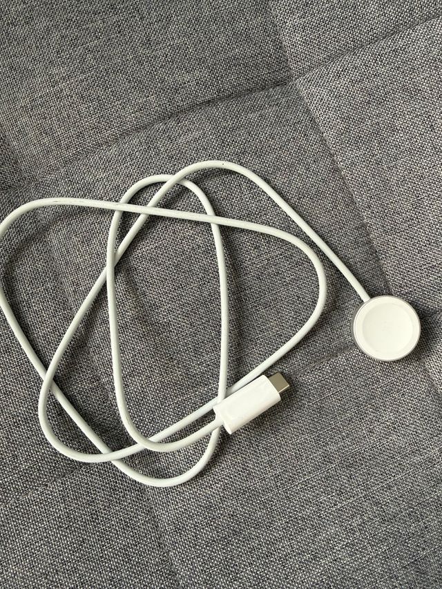 Cargador magnético para Apple Watch con cable USB-C. - Diseño blanco. - Conexión magnética. - Cable de carga. Nuevo sin estrenar