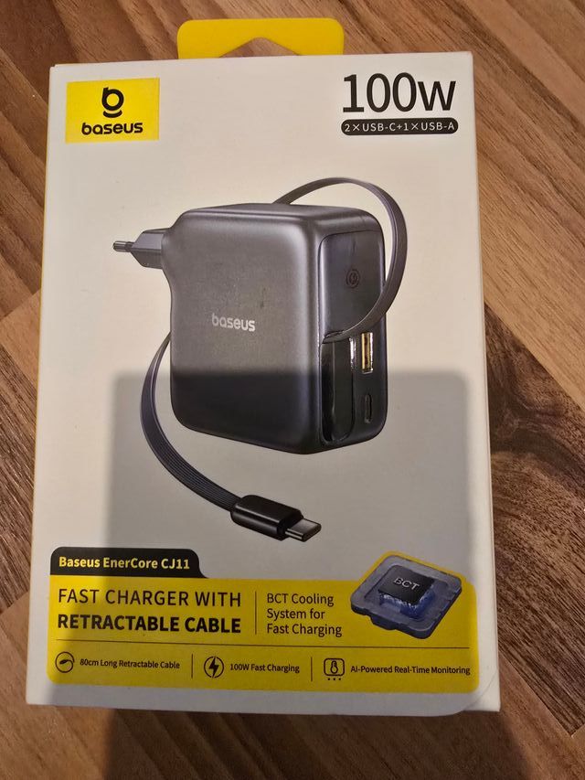 Detalles del productoCargador rápido Baseus Enercore de 100W con cable extraíble. Nuevo a estrenar.