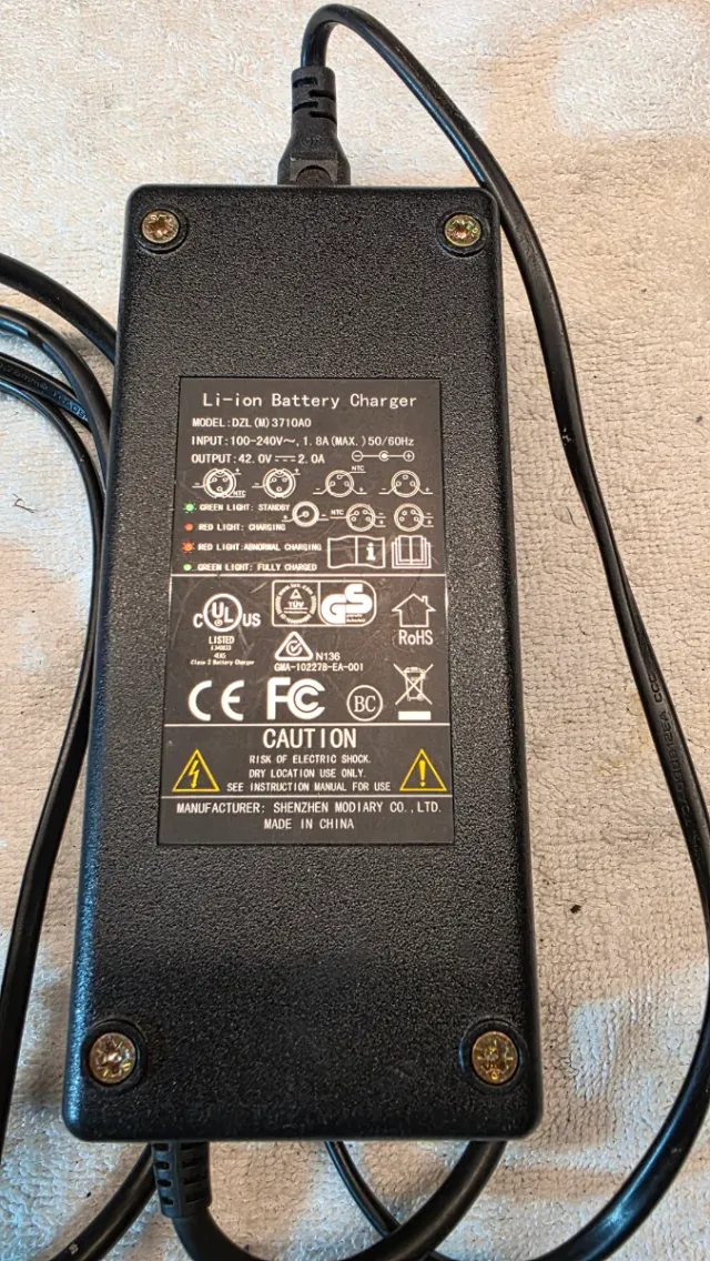Detalles del productoCargador de batería de Li-ion para bicicletas eléctricas.