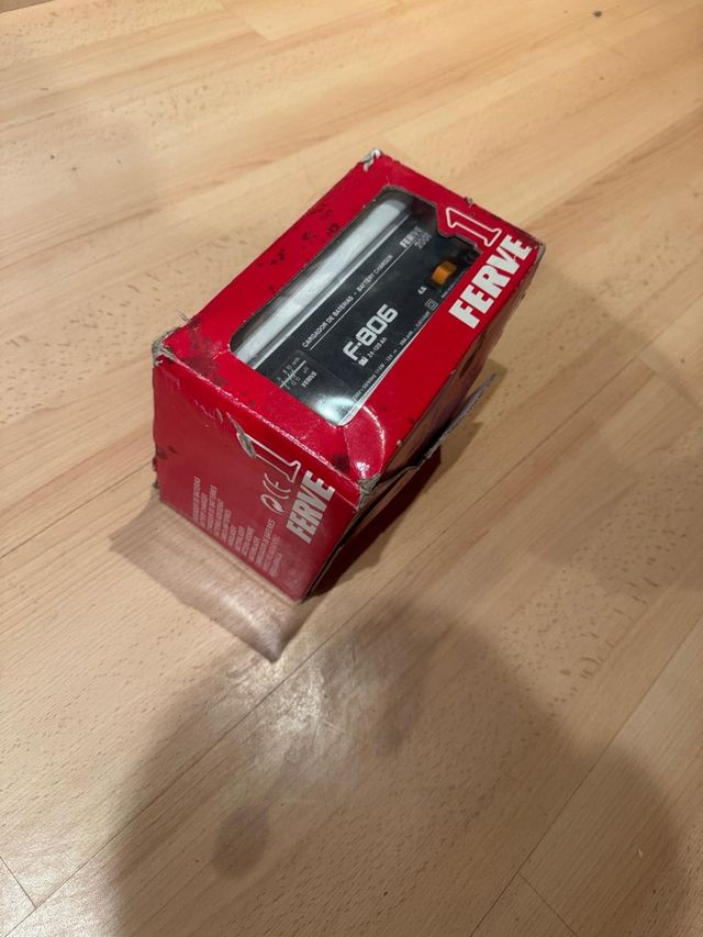 Detalles del productoCargador de baterías FERVE F-806 para coche. Se encuentra en su caja original, que presenta señales de desgaste por el paso del tiempo.