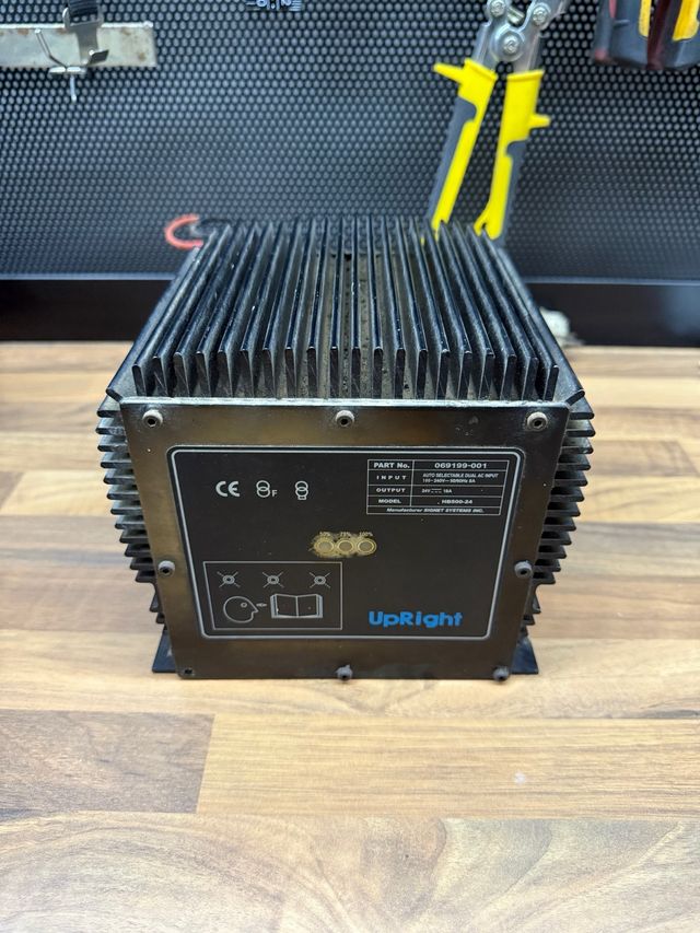 Detalles del productoCargador de baterías para maquina carretetilla elevadora de la marca UpRight valido para cargar cualquier bateria de 24 voltios de toritos apiladores electricos maquinas elevadoras tijera brazo haulotte jlg genie manitou etc