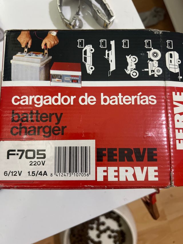 Cargador de baterías FERVE F-705 en buen estado. - Modelo F-705. - 220V. - 6/12V 1.5/4A.