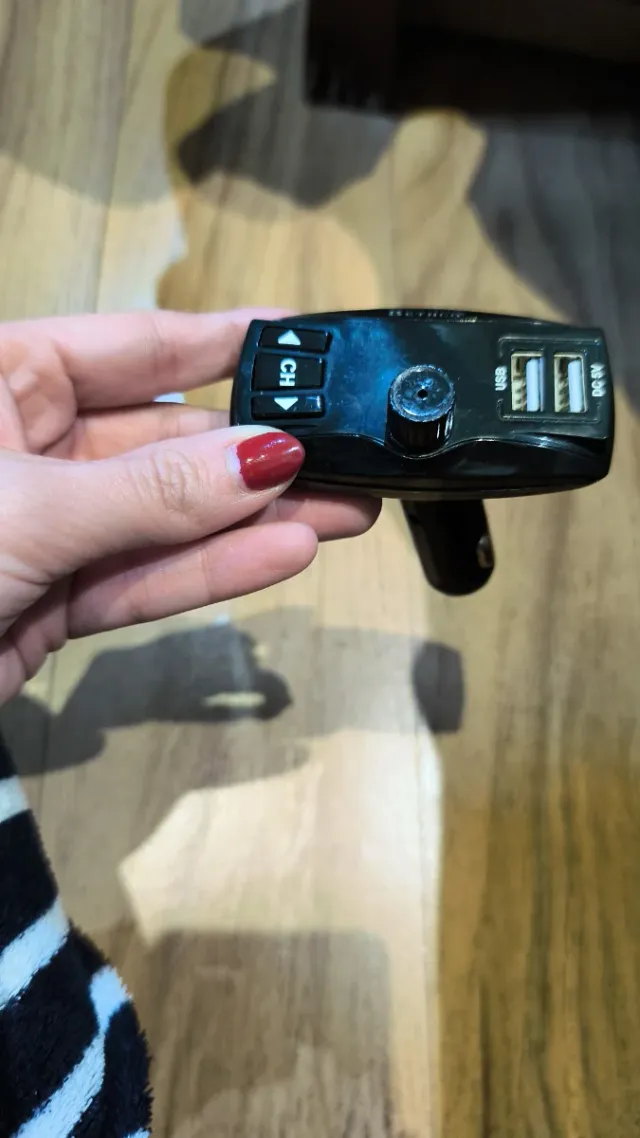 Dispositivo para coche con conexión Bluetooth y puertos USB.