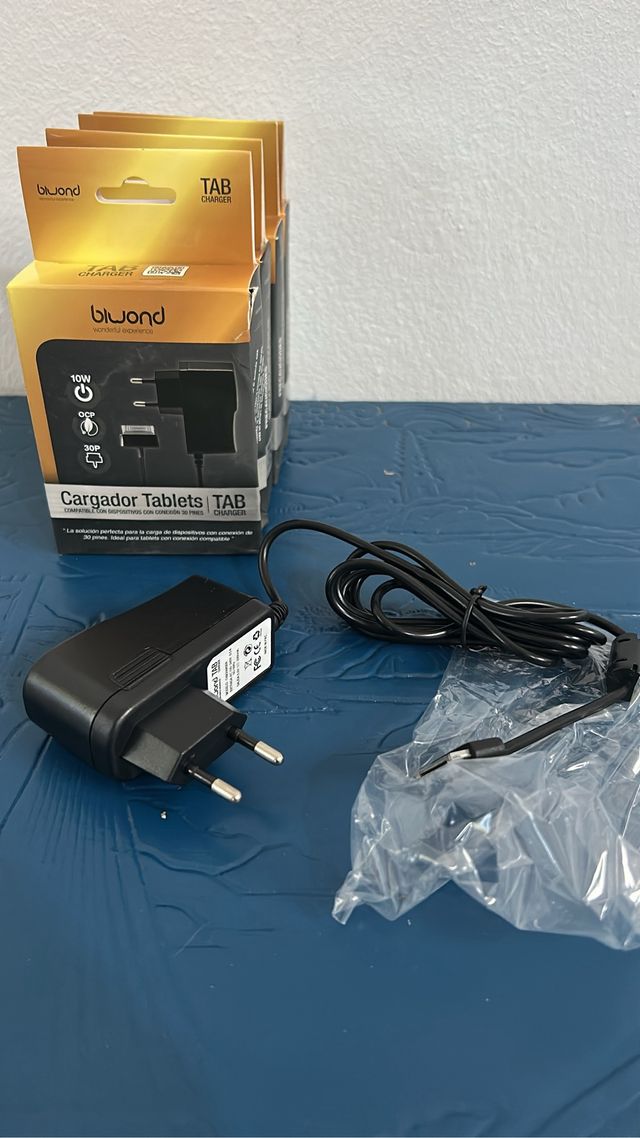 Detalles del productoVendo dos cargadores Bluond para tablets, nuevos. Son cargadores para tablets con conexión de 30 pines.