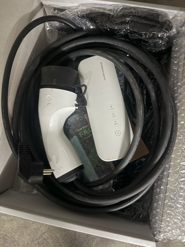 Cargador para coche eléctrico, modelo EVSE. - Cable de carga de alta calidad. - Enchufe tipo Schuko. - Indicadores LED de estado.