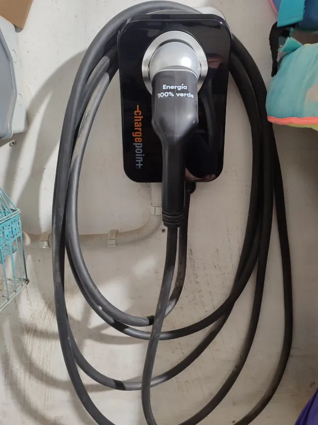 Cargador para coche eléctrico de la marca ChargePoint. Nunca se a usado, esta nuevo!. - Modelo: ChargePoint+ - Mensaje en el conector: Energía 100% verde.