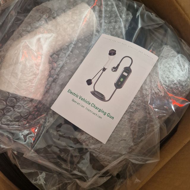 Cargador para vehículo eléctrico, nuevo a estrenar. Incluye instrucciones de uso. -Fácil de usar.-Diseño compacto y ligero.