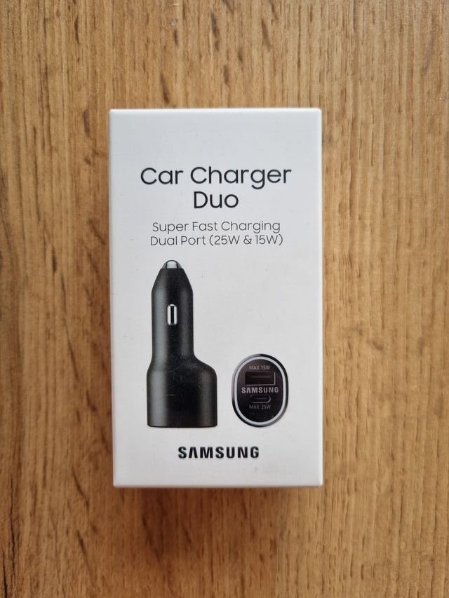 Detalles del productoNo negociable no cambio. Vendo cargador oficial de coche Samsung Duo con doble puerto para carga rápida como nuevo ,usado 1 vez.
