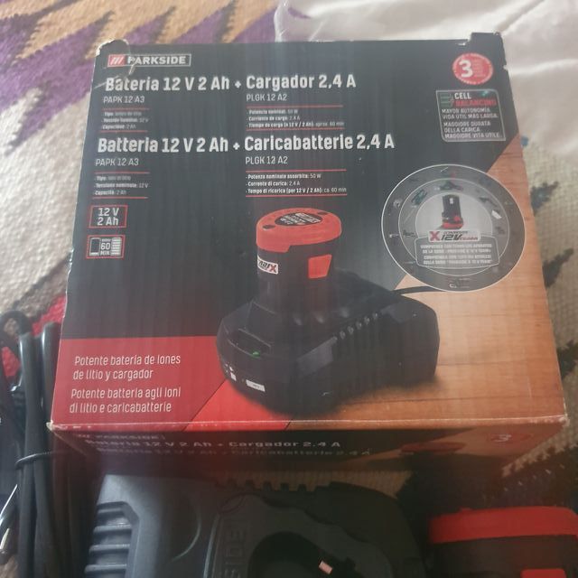 Bateria 12V 2Ah Cargador 2.4 A Potencia 50W Bateria potente de litio. Cargador con indicador de carga. Compatible con todos lis dispositivos de la serie Parkside.X 12 V