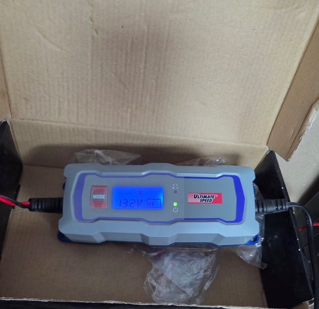 Detalles del productoCargador de baterías de la marca Ultimate Speed. Diseñado para una carga eficiente y segura.