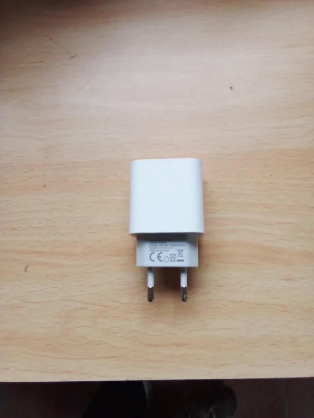 Adaptador de corriente blanco para cargar dispositivos. - Diseño compacto. - Pines europeos.