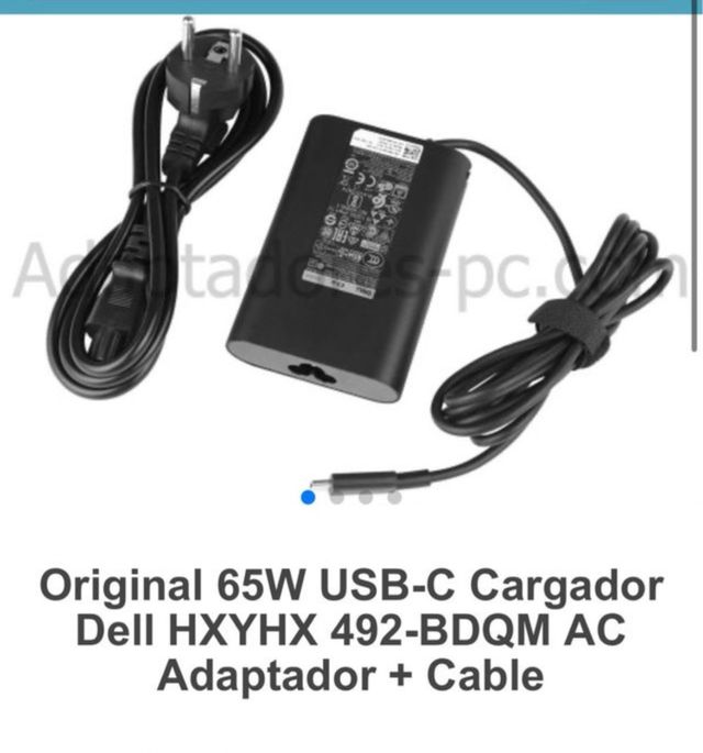 Adaptador de corriente original Dell de 65W con conexión USB-C. - Modelo: HXYHX 492-BDQM - Potencia: 65W - Conector: USB-C - Incluye cable de alimentación.