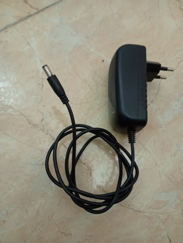 Adaptador de corriente genérico en color negro. 12V 2A - Enchufe europeo. - Cable con conector redondo.