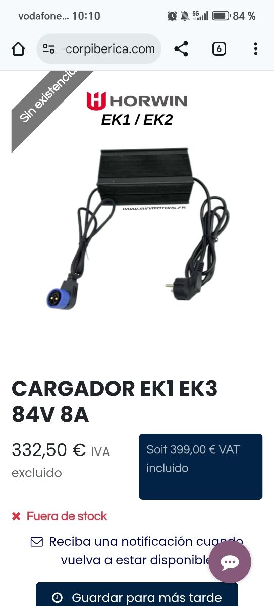 Detalles del productoCargador de batería para motos eléctricas Horwin EK1 y EK3. Está en perfecto estado y listo para usar.