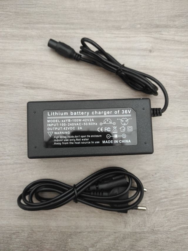 Cargador para batería de litio de 36v. Cargador de 42v 2A. Válido para hoverboard, patinete eléctrico, etc. Salida circular, tres pines con muesca (última foto)
