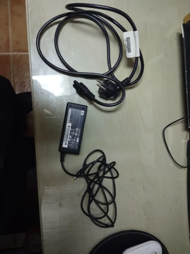 Cable cargador para portátil HP. Incluye el adaptador de corriente y el cable de conexión a la red eléctrica. - Adaptador de corriente HP. - Cable de alimentación.