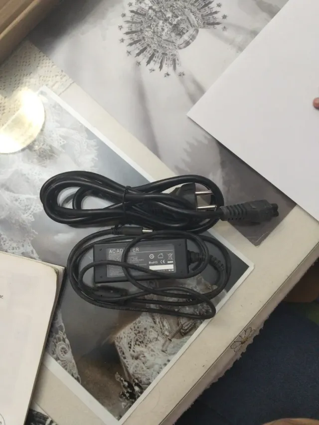 Adaptador de corriente AC para portátil. - Incluye cable de alimentación. - Diseño compacto y portátil.