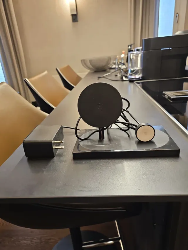 Base de carga inalámbrica con adaptador de corriente. - Diseño moderno y compacto. - Incluye enchufe tipo americano.