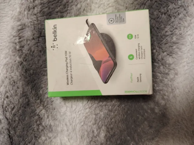 Cargador inalámbrico Belkin BOOST↑CHARGE de 10W. - Carga rápida y conveniente. - Compatible con Apple y Samsung. - Diseño elegante y compacto.