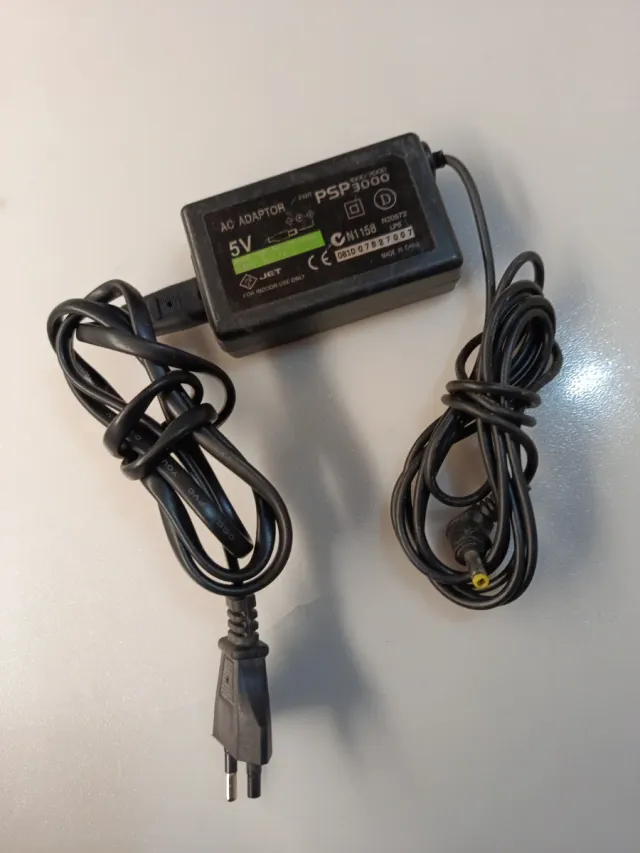 Adaptador de corriente para PSP 3000. - Voltaje de salida: 5V. - Diseñado para uso en interiores. - Fabricado por JET.